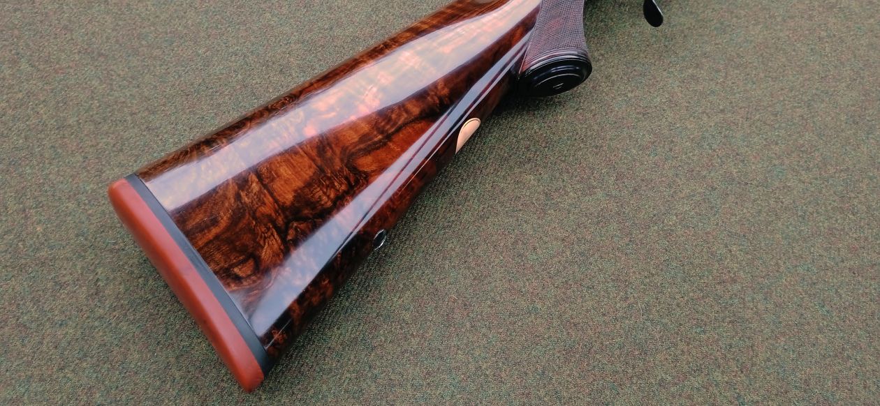 The hand-rubbed oil finish highlights the wood’s natural richness, imbuing the rifle with a warm and lustrous patina.