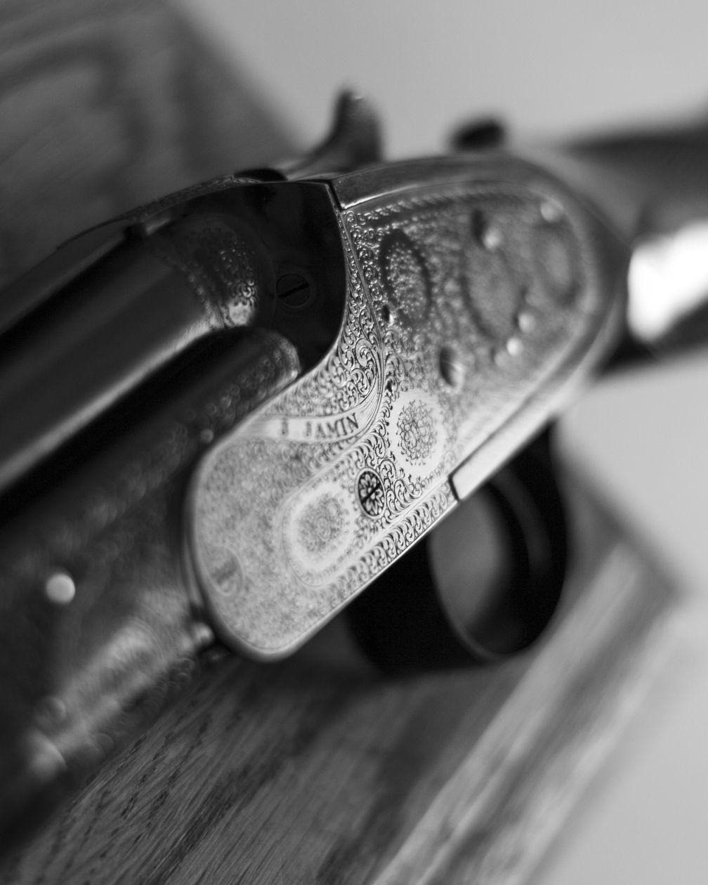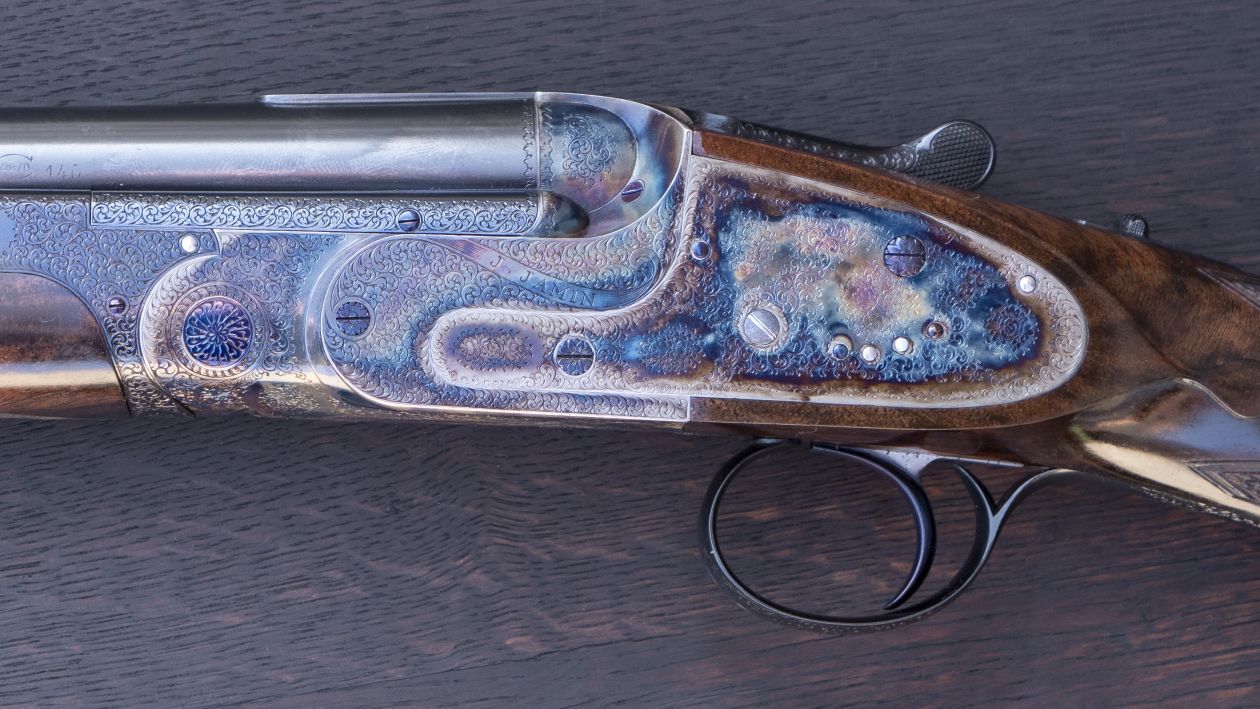 The process involved meticulous attention to detail, both in terms of mechanics and aesthetics, to deliver firearms that are both functional and elegant. The chopper-lump barrels were assembled by Dany Amand, a gunsmith who previously worked at Holland & Holland and Lebeau-Courally. The forged steel, action frame houses a genuine side-lock system and an inertia single-trigger mechanism.